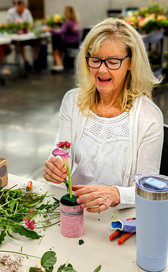 Miembros de muchas de nuestras organizaciones (Master Gardeners, Petal Pushers, High Desert Design, Rose Society, Aril & Iris, Uptown y Valley) se unen para hacer más de 600 arreglos que luego se entregan a veteranos locales, centros para personas mayores. , Vida Asistida y Hogares de Cuidado a Largo Plazo.